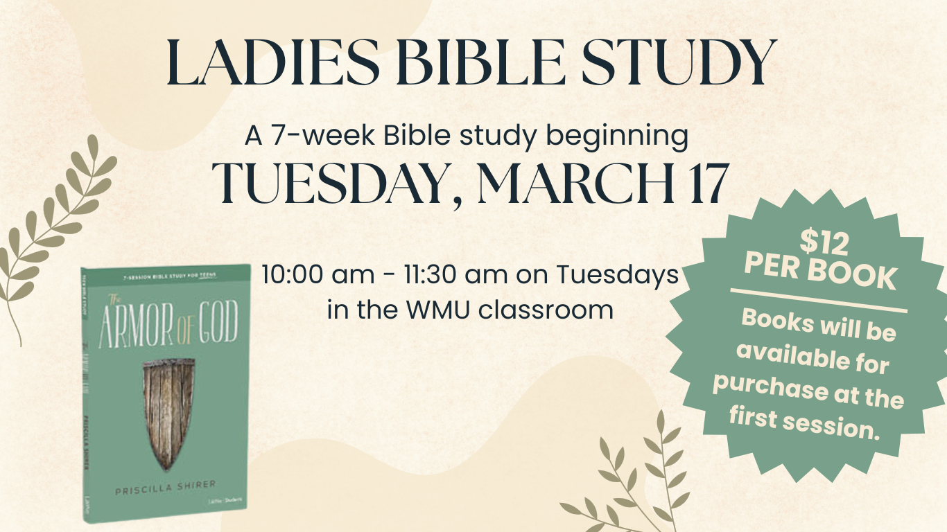 The group will gather in the Navigators/WMU classroom at 10 am on Tuesdays beginning March 17. Led by Faye Bartlett.